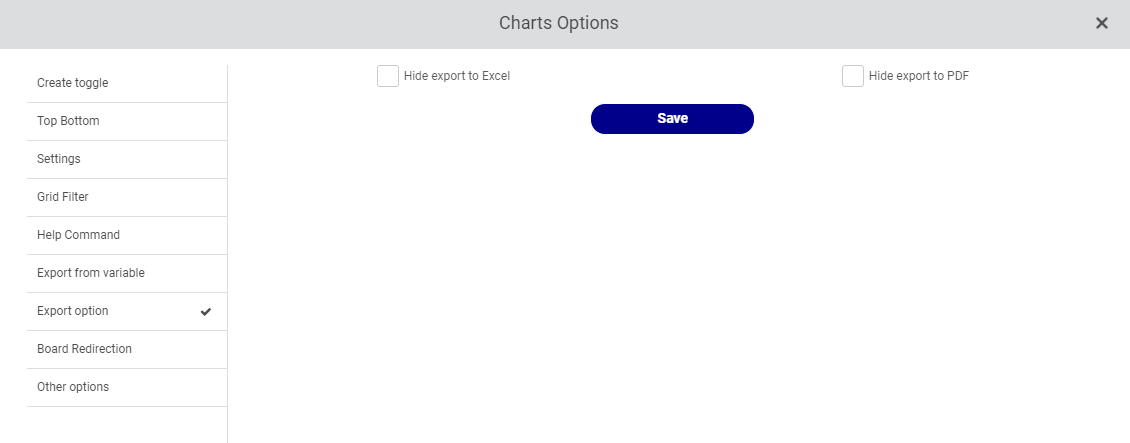 There will be options to export to Excel and PDF in the export settings. The export option in the charts can be viewed based on the user's choosing.